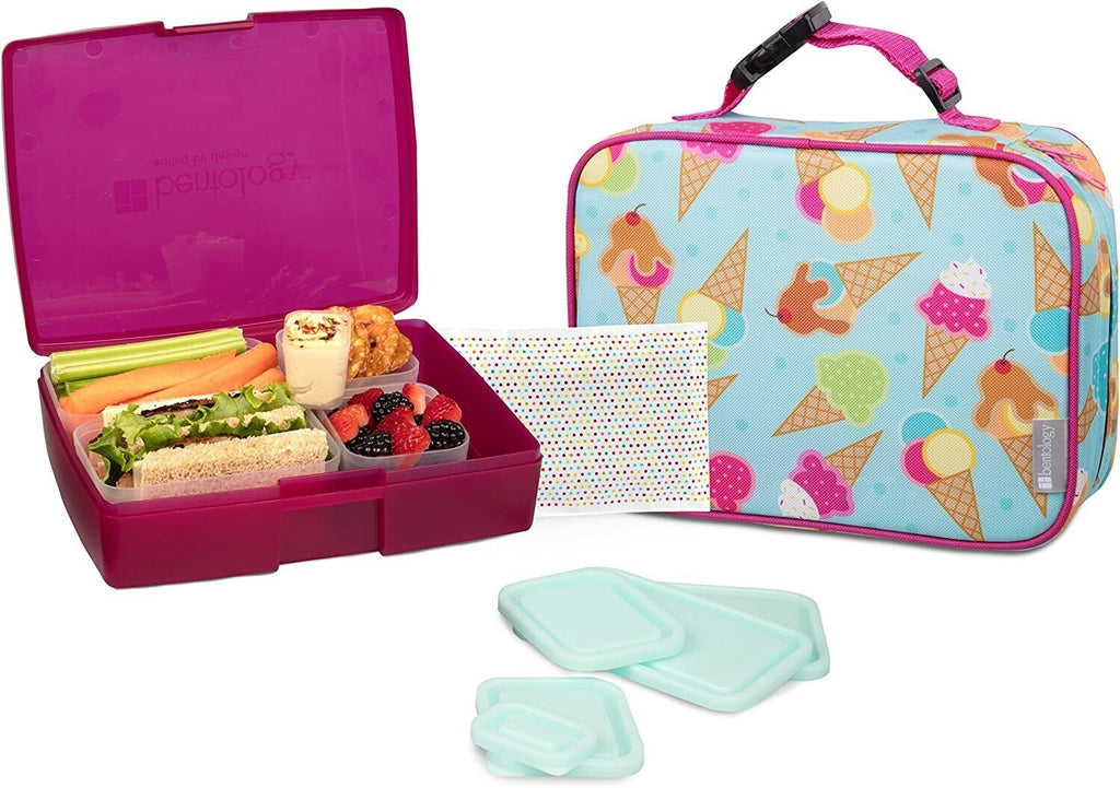 Bentology w/ design Ice Cream on Carolina Blue Lunch Bag Box Set Bento 12 Piece