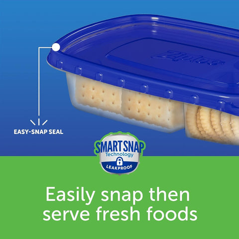 Lot of 2 Ziploc Smart Snap Leak Proof 3 Compartment Rectangle Storage Containers