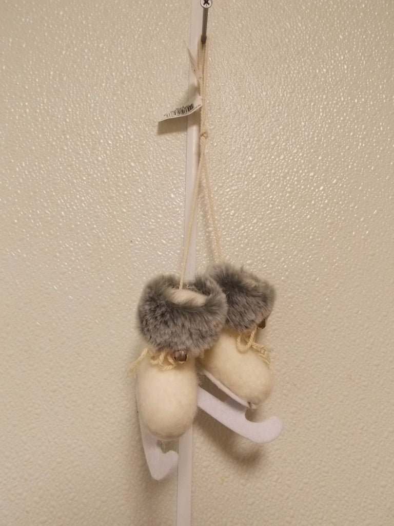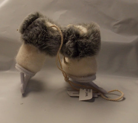 Macy's Holiday Lane Cozy Christmas White and Gray Ice Skates Ornament