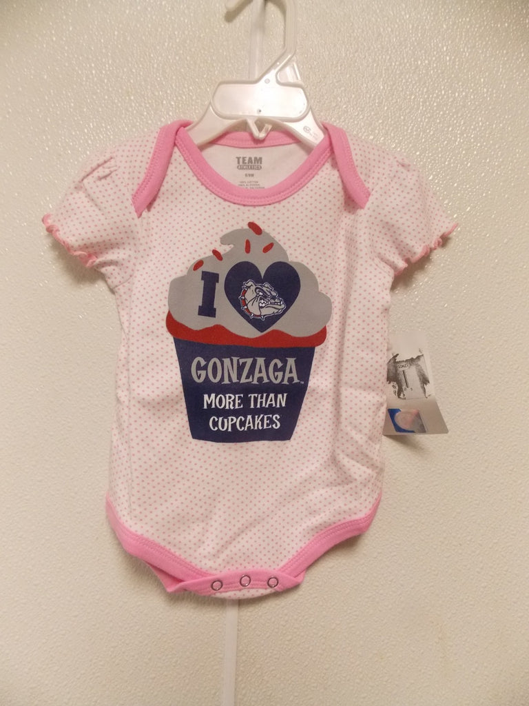 NCAA Gonzaga Bulldogs Pink Polka Dots on white Bodysuit Size 6/9 M Team Athletics