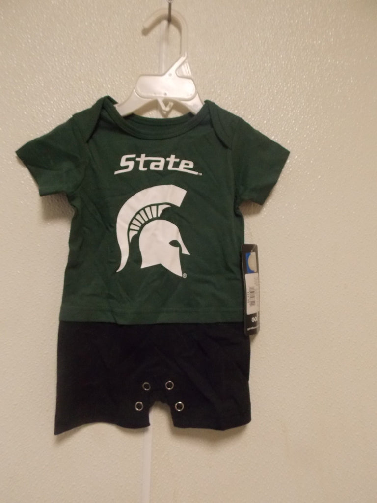 NCAA Michigan State Spartans Green and Black Romper Size 0/3 M Gen2