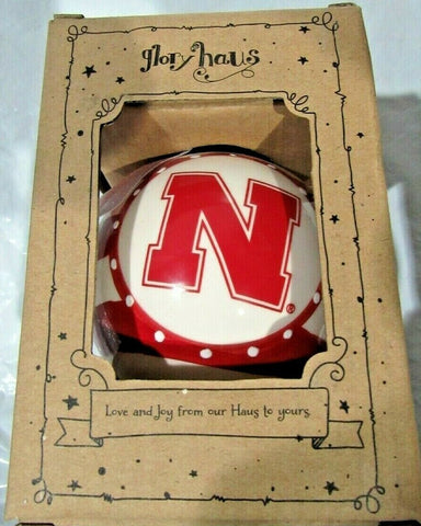 NCAA Nebraska Cornhuskers Ceramic Ornament w/red stripes 3.5" Diameter by Glory Haus