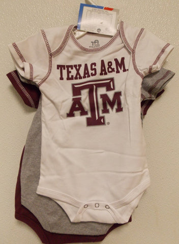 From kickoff to the final seconds of the game, the tiniest member of the squad will be looking sporty dressed in this NCAA-themed 3-piece set. This set comes with everything she need to show support of his favorite team! A set of 3 different short sleeve bodysuits including maroon, white and gray. Made from cotton/poly blend interlock fabric, these baby essentials will keep him cool and comfortable all day long. The higher-in-the-front bottom snap closure gets mom and baby back to the big game faster, while an expandable lap shoulder neckline makes dressing less of a chore. Bib features soft neck closure for comfortable fit and coordinating cap completes the set. The easy care fabric keeps post-game cleanup to a minimum.
