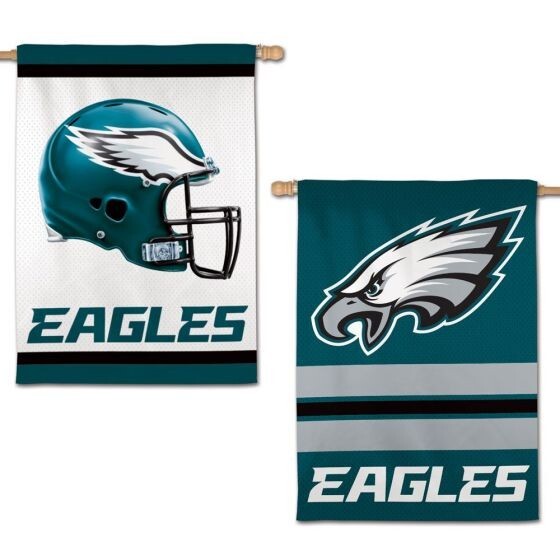 Officially licensed Philadelphia Eagles double sided vertical house banner. This house flag features the NFL Eagles logo in two different designs - see picture for the front and back view. Made out of soft polyester with pole sleeve and tab. When you want to cheer for the Philadelphia Eagles football team fly this 2 sided banner from your house flagpole (sold separately) or display indoors as wall decoration in your personal space. Pole not included!