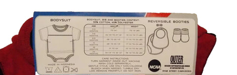 From kickoff to the final seconds of the game, the tiniest member of the squad will be looking sporty dressed in this NCAA-themed 3-piece set. This set comes with everything she need to show support of his favorite team! A coordinated short sleeve bodysuit, bib, and booties are all included. Made from cotton/poly blend interlock fabric, these baby essentials will keep him cool and comfortable all day long. The higher-in-the-front bottom snap closure gets mom and baby back to the big game faster, while an expandable lap shoulder neckline makes dressing less of a chore. Bib features soft neck closure for comfortable fit and coordinating cap completes the set. The easy care fabric keeps post-game cleanup to a minimum. Made By adidas.