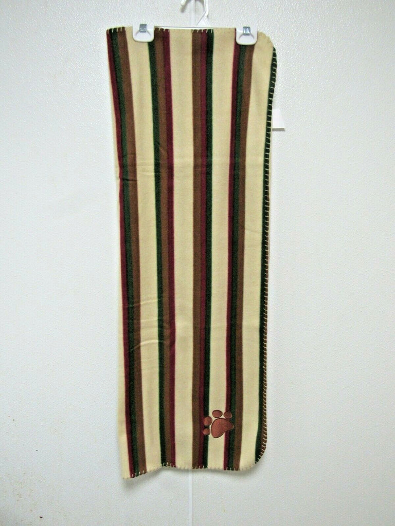 Pet Medium Brown Paw Pet Cat Dog Fleece Soft 29x39 Blanket Earth Tone Stripped